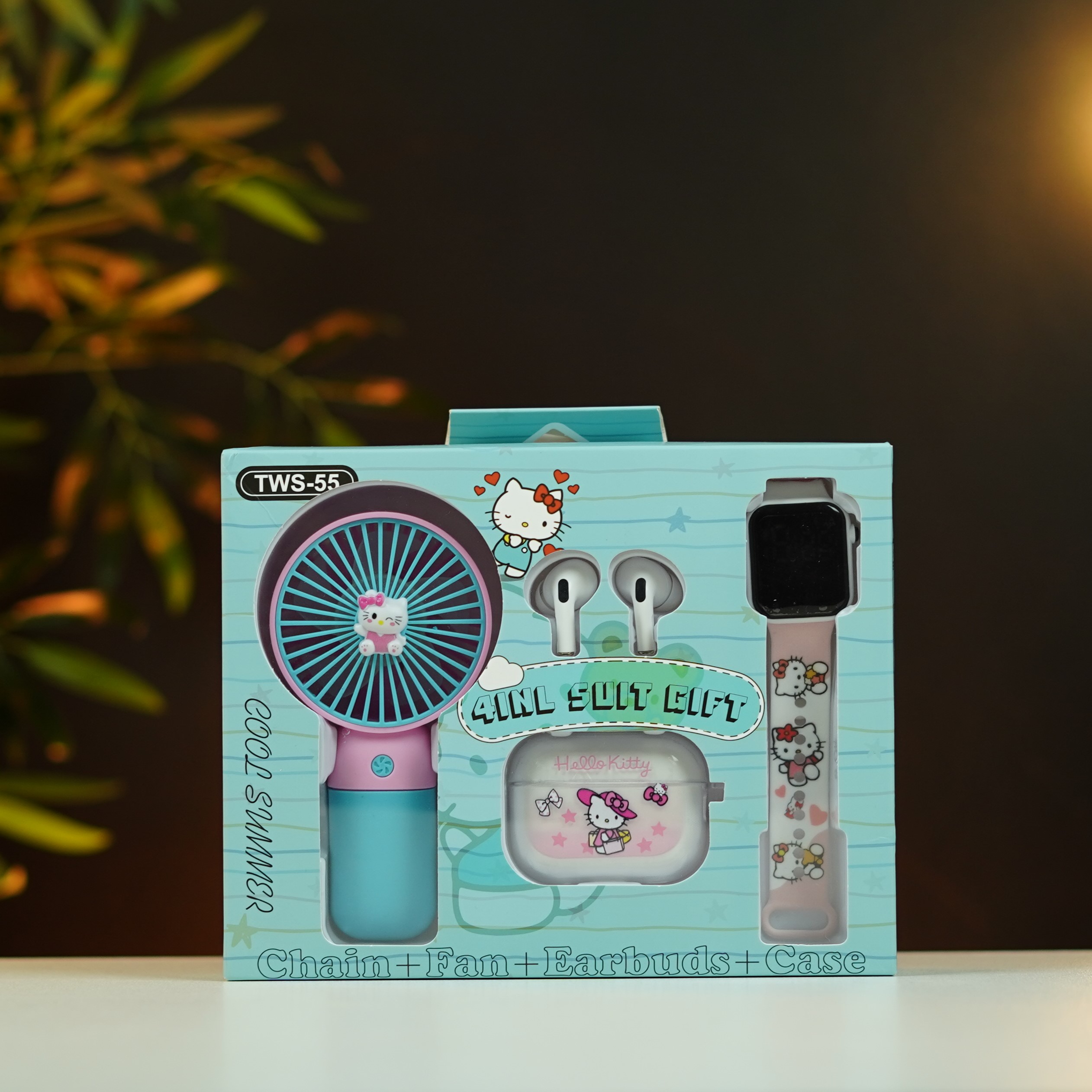 Earbuds + Fan + Watch Combo